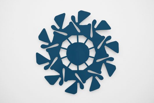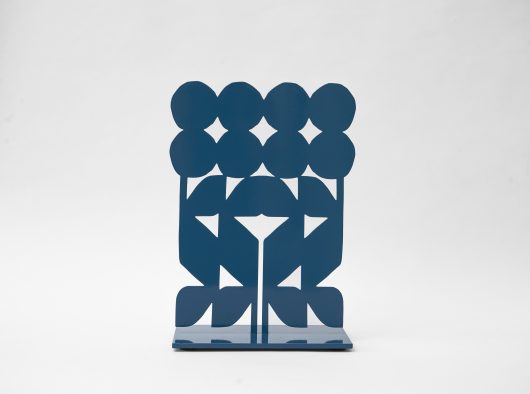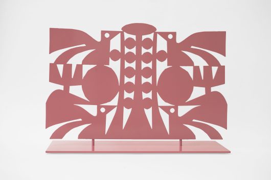 In New Travelers, Hudson deepens his exploration of abstract image-making, responding to a period of personal introspection amid global uncertainty. Across this new series, he introduces motifs that suggest familiar forms, function, and hope. Across the tabletop and wall-mounted sculptures, and within the singular painting anchoring the forms in Gallery Two, high-contrast compositions of pinks, crimsons, creams, and saturated blues emerge, creating a rhythmic interplay of positive and negative space. The chromatic palette heightens the emotional resonance of the works, evoking the vibrant, somewhat romantic hues of sky, flora, and earth. Throughout the compositions, organic shapes reminiscent of plants, flowers, and birds emerge, seamlessly integrating with Hudson’s signature use of geometry and color.
