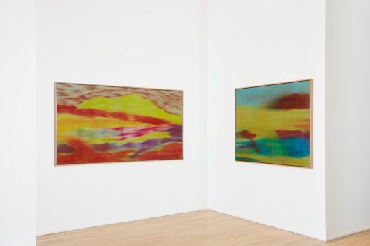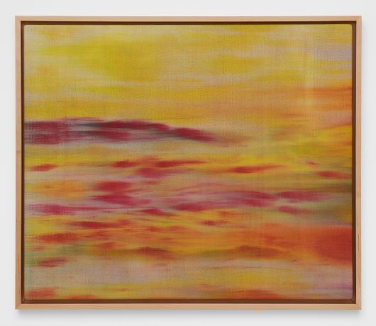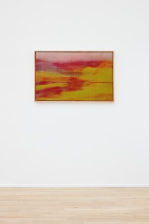 For her first exhibition with the gallery, Jónsson presents new works in an ongoing series of glacial landscapes. Referencing locations in Jökulsárlón, Iceland’s glacial lagoon in the southern part of Vatnajökull National Park, her panoramic compositions are imbued with a rich palette of neon yellows, electric blues, and earthly reds. With these newest works, Jónsson pushes the limits of representational form and atmospheric landscape, embracing greater abstraction and visual enigma. She is indebted to capturing the visually complex and ecologically vulnerable terrain of Iceland’s glacial regions. Her psychedelic color shifts and patterns of interference, which can be seen in the Northern Lights or the mineral traces of geothermal activity, speak not only to the environment’s visual drama but also to its precarity—landscapes on the verge of transformation or disappearance.